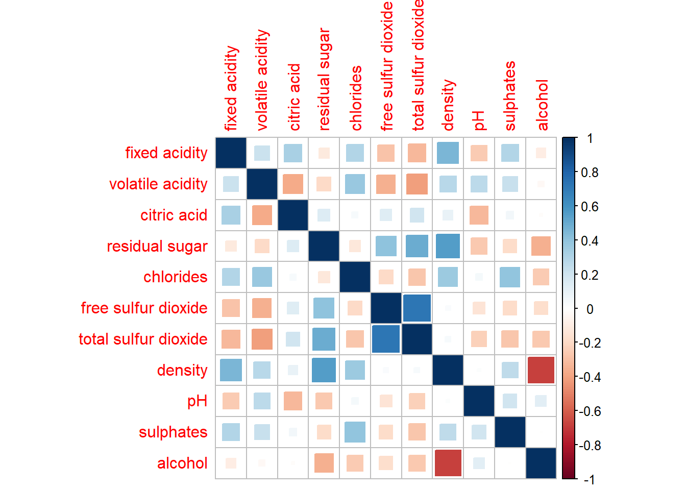 Before we can plot a corrgram using corrplot(), we need to compute the correlation matrix of wine data frame.