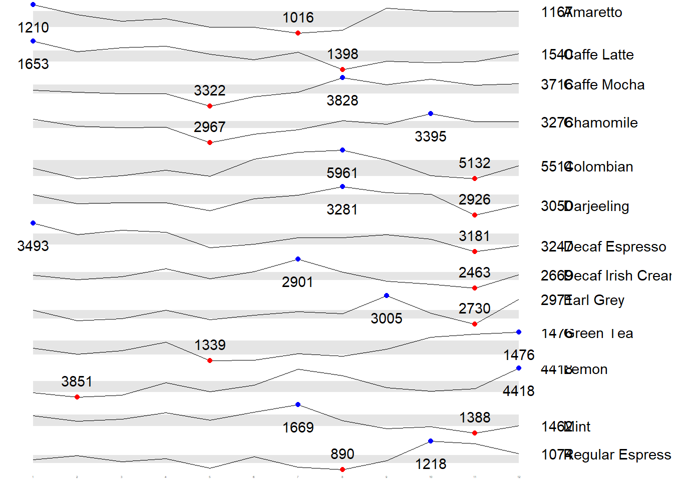 | Decaf Irish Cream | 2463 | 2901 | 2,648.25 |
