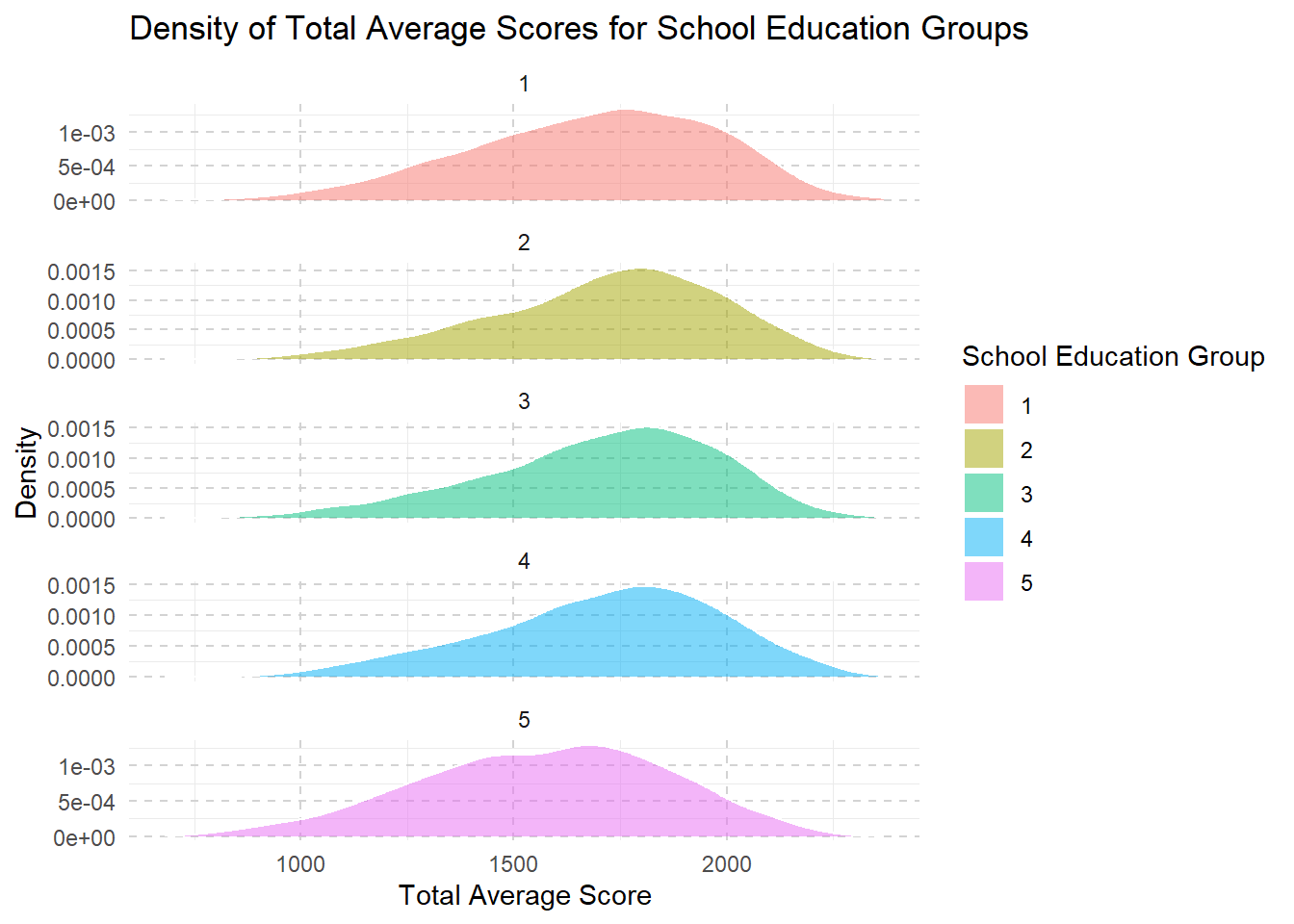labs(title = "Density of Total Average Scores for School Education Groups",