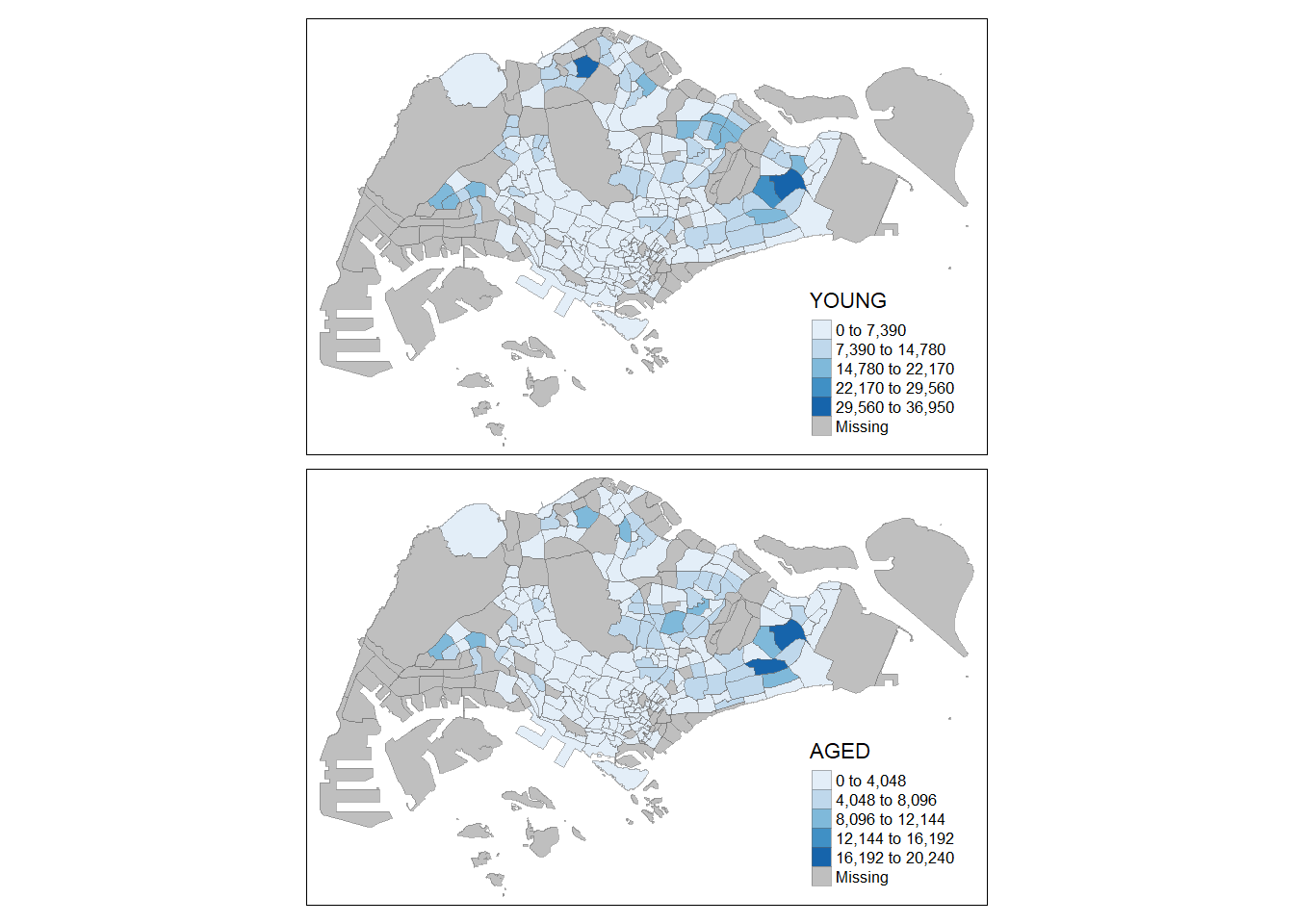 tmap_arrange(youngmap, agedmap, asp=1, ncol=2)